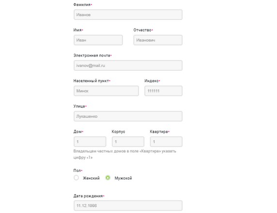 Затем в форму регистрации заполняем персональные данные, вводим: