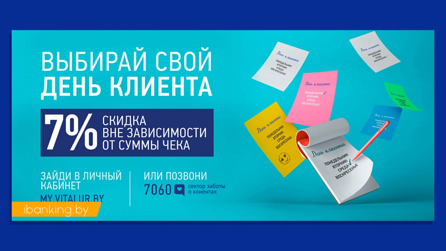 В «День клиента» скидочная программа лояльности в магазинах Виталюр действует на особых условиях. Скидка 7% распространяется на покупки, независимо от их стоимости.