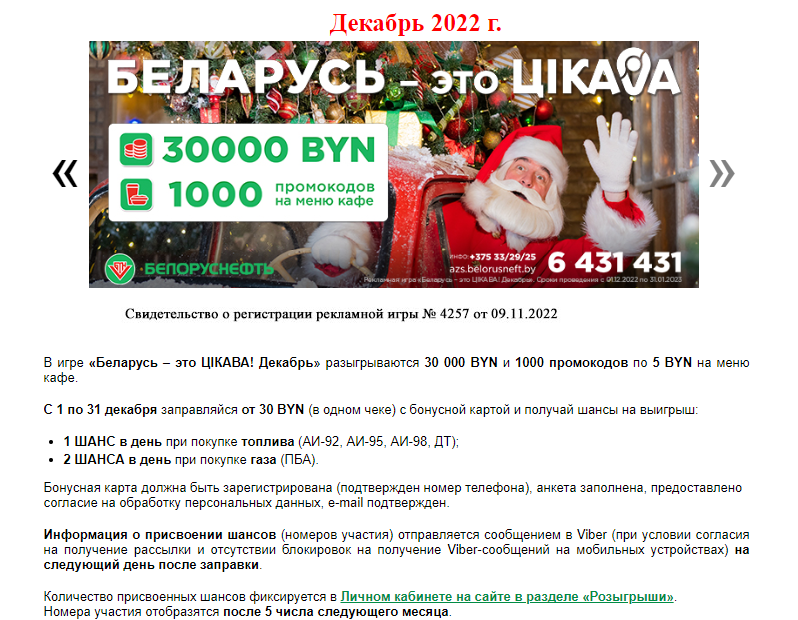 | 300 сертификатов на заправку | На любой АЗС «Белоруснефть» можно заправляться на сумму — 50 рублей |