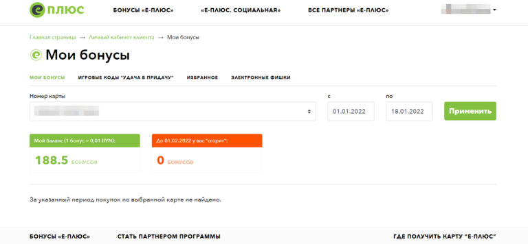 Как посмотреть отчет по бонусной карте «Евроопта»?