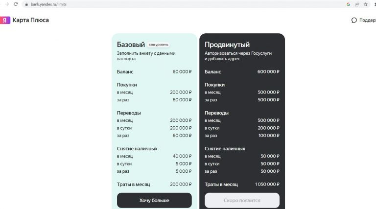 Следующий уровень – «Продвинутый» (пока недоступный) с большими лимитами, для его получения потребуется подтвердить личность через Госуслуги.